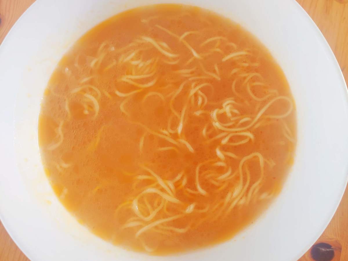 まず、水550〜600mlを沸騰させ麺を4分半茹でます。最後にスープを入れてかき混ぜたら完成です。