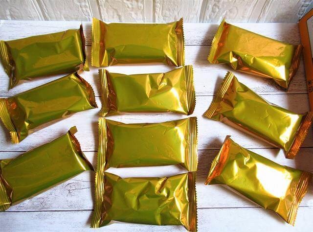 2つとも箱を開けてみると、ゴールドの袋に1つずつ個包装されています。