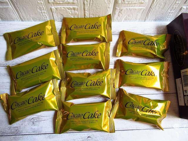 ちなみに「やさしい甘さのカカオケーキ」には、個包装にも商品名がプリントされていますが「やさしい甘さのマロンケーキ」には何も記載されていません。