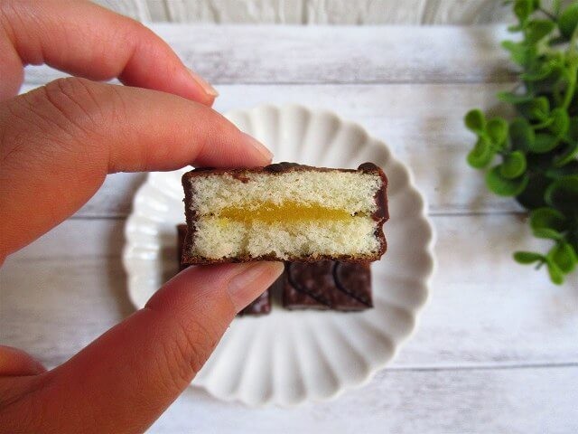 真ん中に入っているチョコレートクリームは柔らかく、生地はしっとり系で普通においしい……。