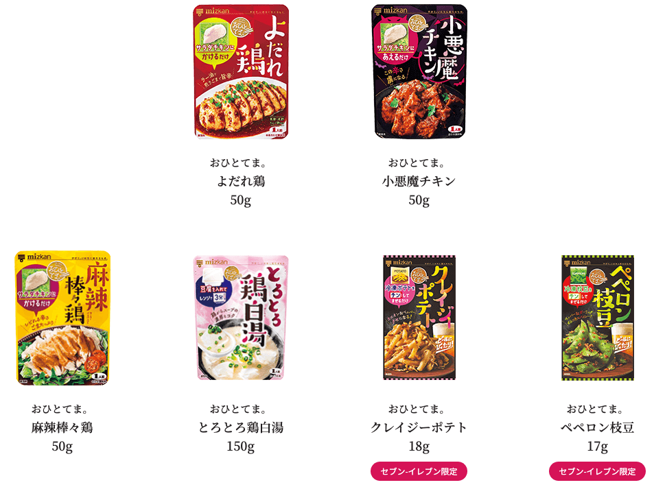 ミツカンの「おひとてま。®」は、全国のコンビニや、スーパー、ドラッグストアで購入できる、忙しい人の応援調味料シリーズです。