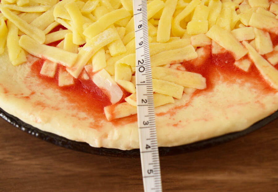 ざっとサイズをはかってみると、直径24cmでした。ピザハットのMサイズのピザ(2~3人前)が直径約26cmなので、Mサイズよりも一回り小さいくらいですね。