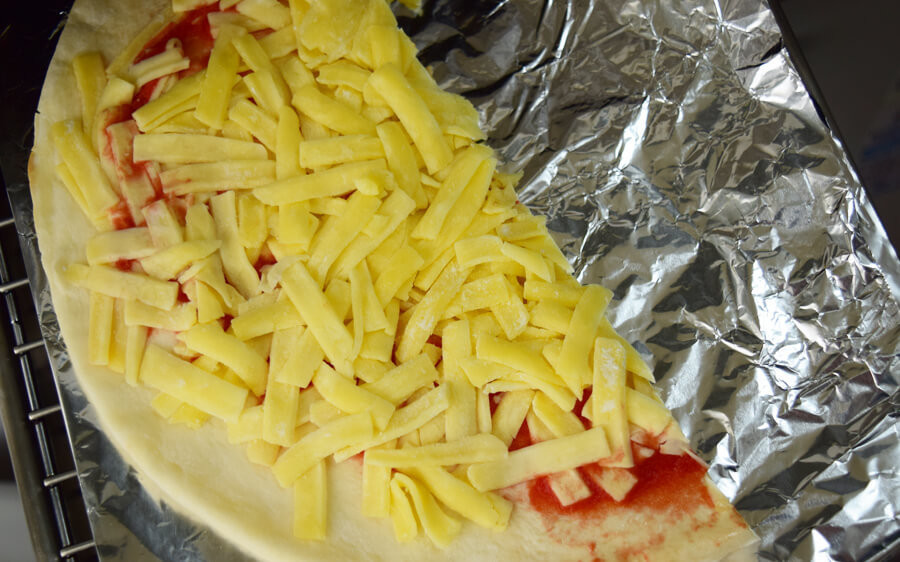 チーズがどろどろにとけますので、オーブンやオーブントースターでの調理であっても、アルミホイルを敷いた方が良いですね。