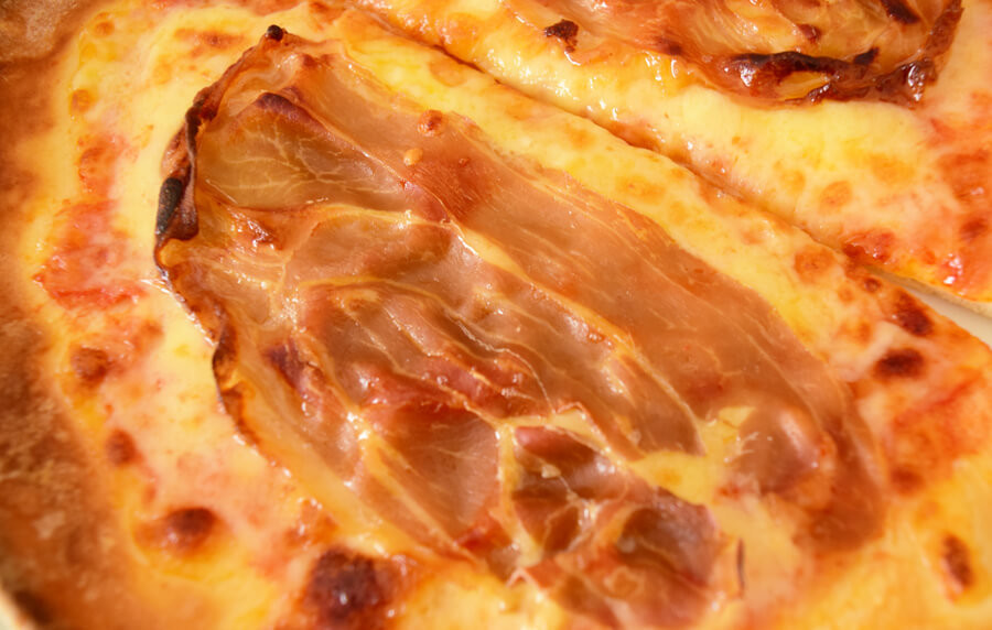 つづいては、大きなプロシュートがピザ生地を覆っているのが印象的な「ナポリピザのプロシュート」。