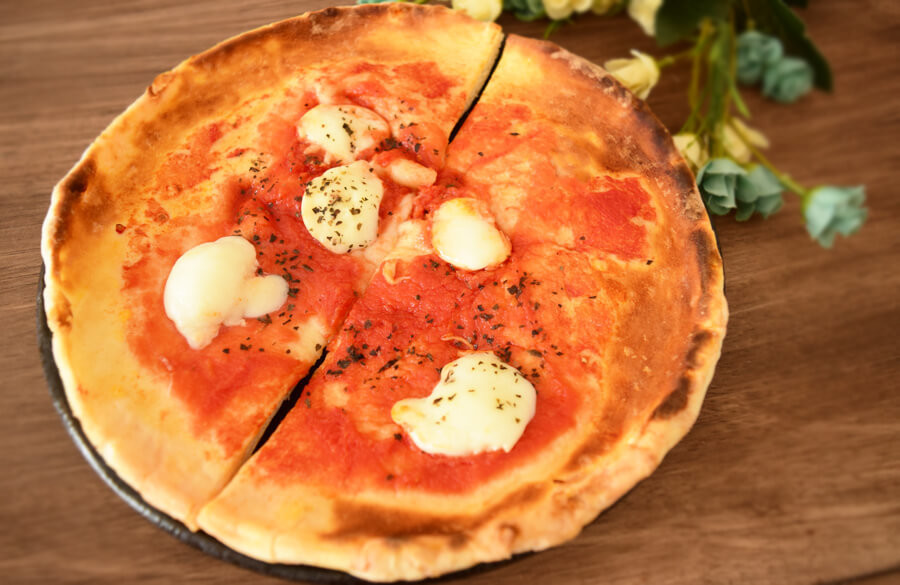 もっちりピザ生地がチーズやトマトピューレをしっかりとキャッチしていて、手がべとつかないのも地味に嬉しいポイントでした。ひとりで食べると飽きがくるシンプルな味わいなので、家族とシェアして食べると◎