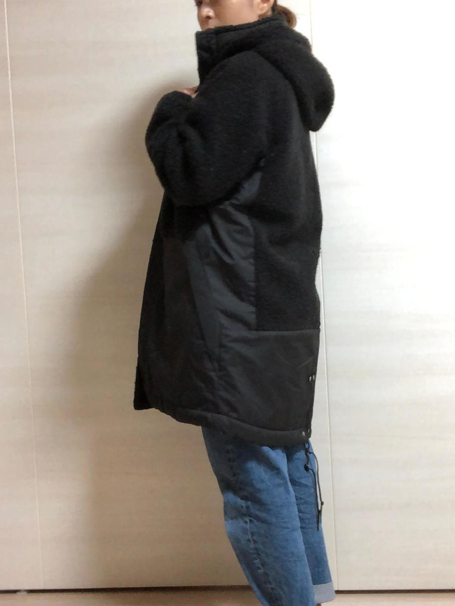 ストレートに着られます。ボアがありやや大人っぽい印象に。クールに決めたいときによさそうです。