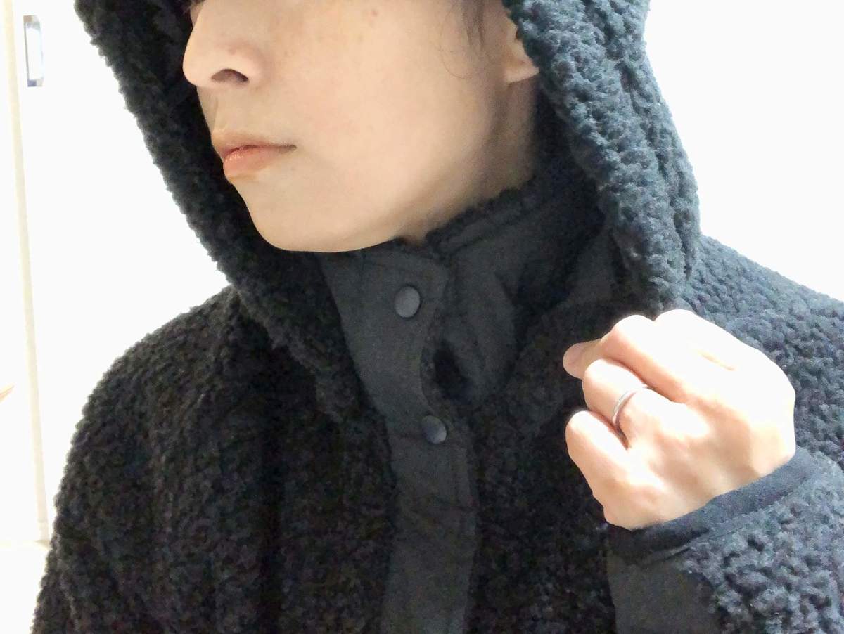 さらに生地が防風だけでなく、ボアもポイントです。しかも服の外側だけでなくところどころ内側もボアが使われています。そのため、内側もぽかぽか感じるのもポイントです。