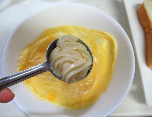 ③加熱後、マヨネーズ大さじ1を入れてよく混ぜ合わせ、スクランブルエッグを作る