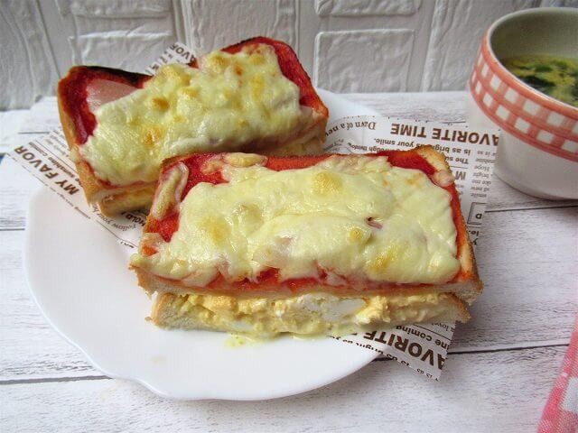 作り方の工程はとっても簡単なのに、コメダ珈琲のメニューにある「たっぷりたまごのピザトースト」に激似の豪華なトーストが出来あがりました。