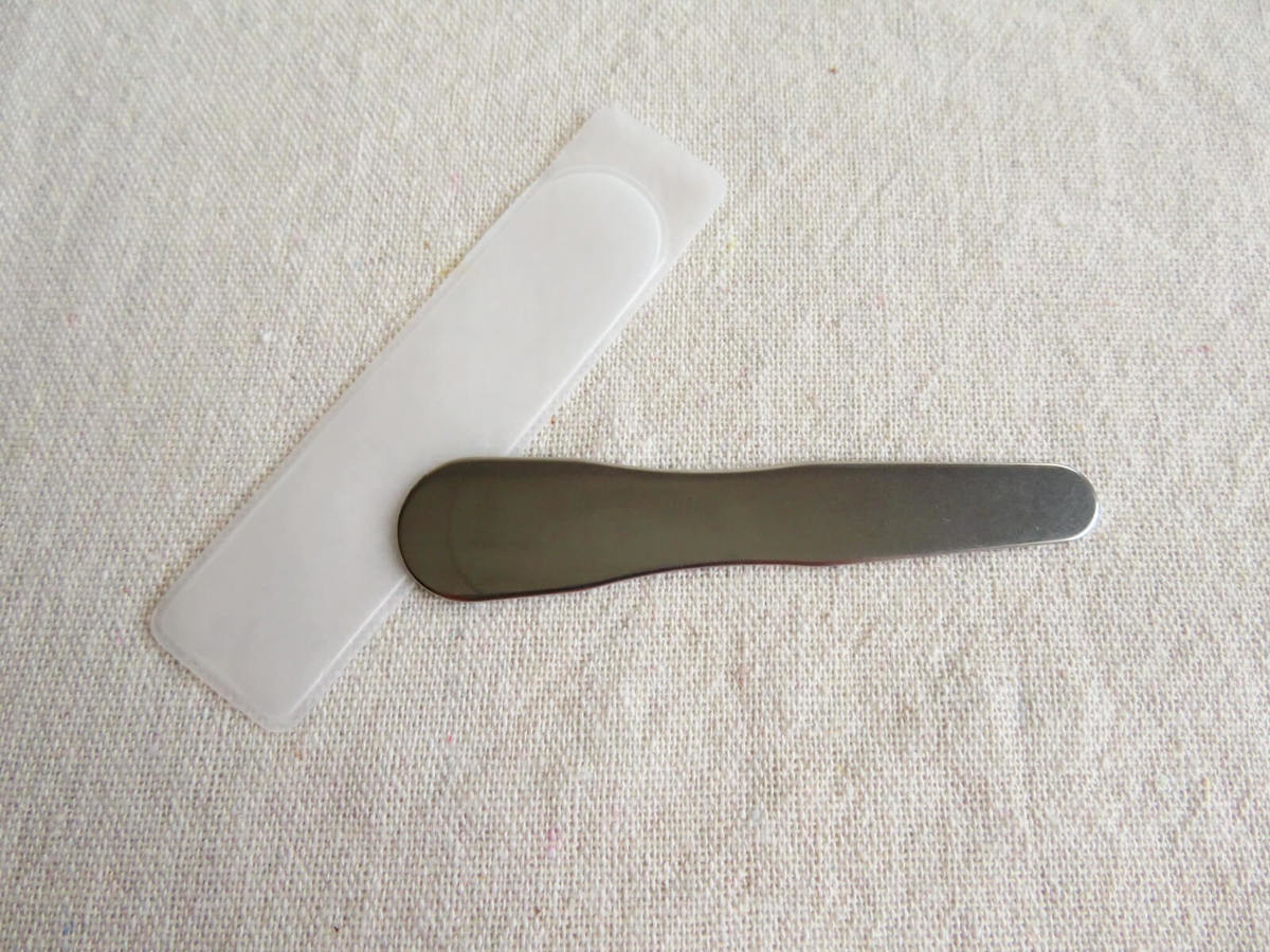 衛生的に中身をすくい取れるステンレス製のスパチュラは、スキンケアの必須アイテム。