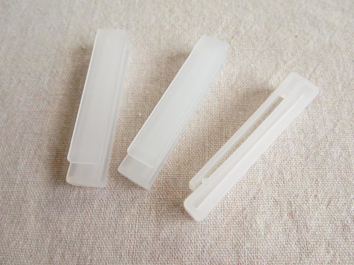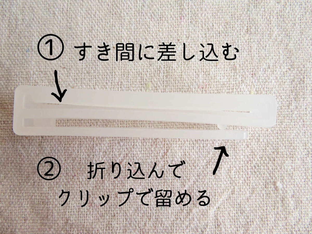 長さは約7cm。チューブをすき間に差し込み、先端を折り曲げてクリップで留める仕組みです。
