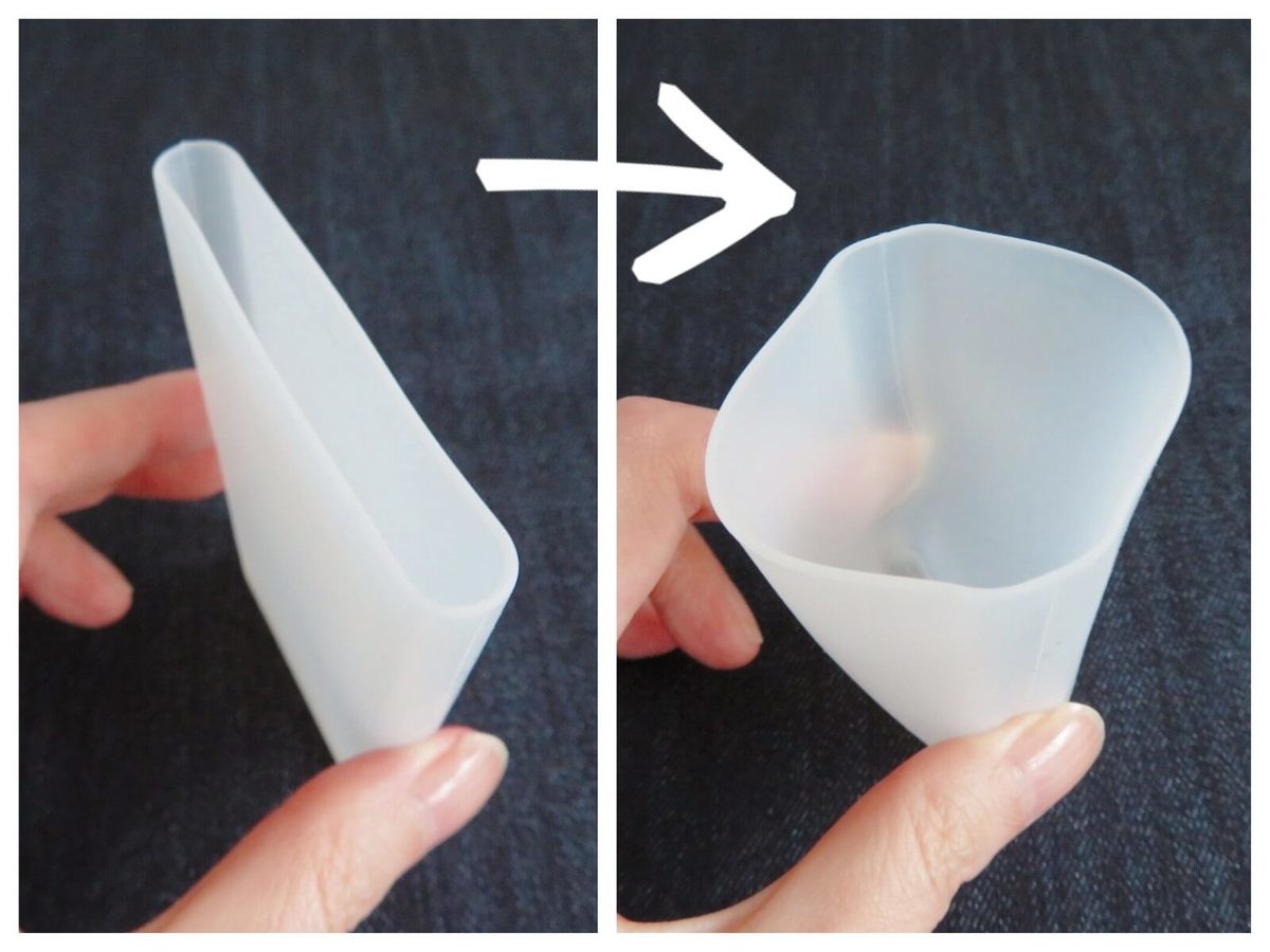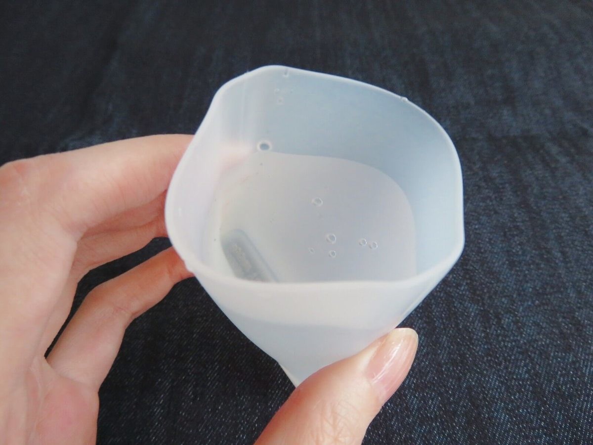 使うときは、軽く押して広げます。柔らかいシリコーン素材なので、余計な力は不要です。