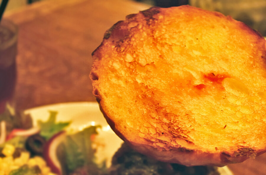 そして、バンズをよく見てみる焼き目がついています。バンズだけ食べてみると、パン生地の香ばしさとカリッとした食感。パサつきはなし。バンズだけでもおいしいんです!