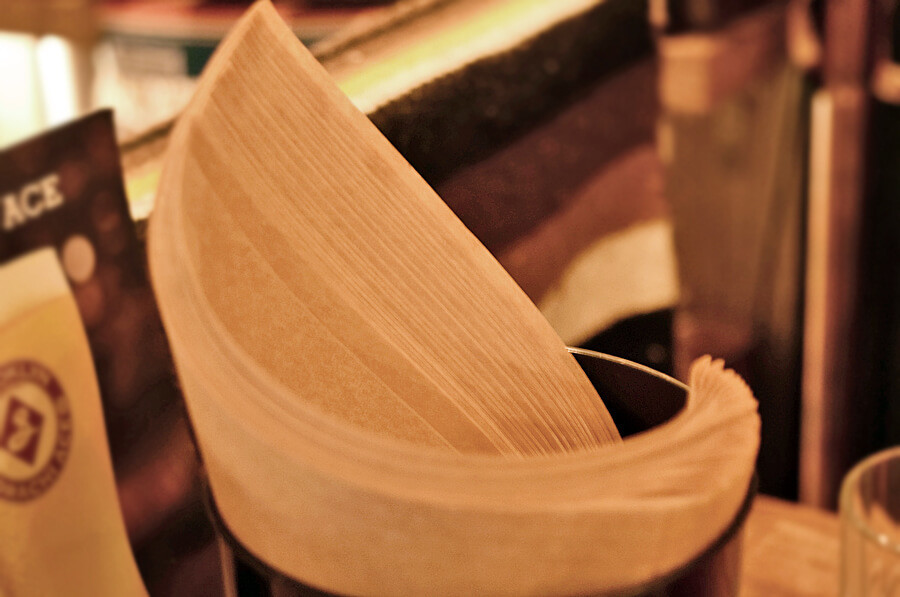 高さがすごいことになっているハンバーガーで、そのまま食べるのは困難。一体どうやって食べるのかというと、座席にある紙袋にハンバーガーを包んで食べるのだとか。というわけでいただきます。