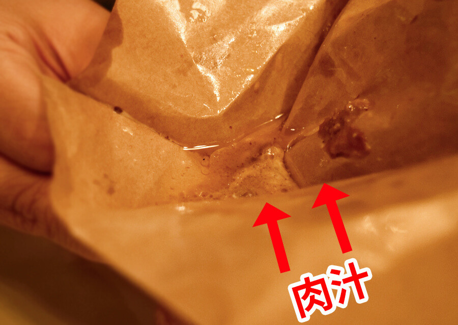 食べ切った後、紙袋に肉汁が溜まっていました。