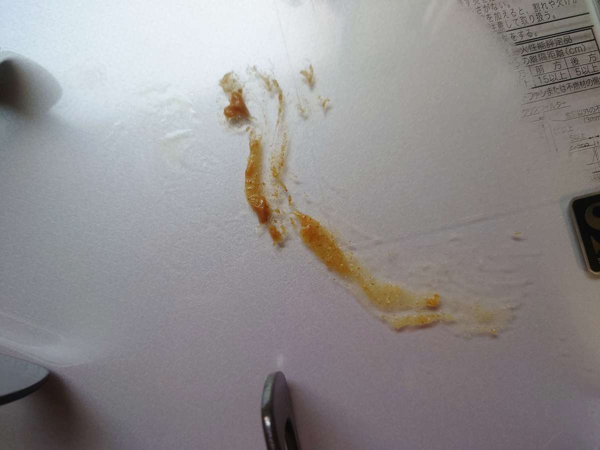 写真はカレーの汚れです。ベったとしつこい汚れですが……、