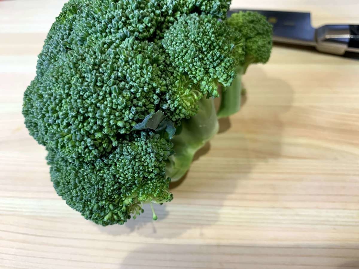ブロッコリーは茎を切り取り、残った部分を水でよく洗います。今回、茎は使いません。