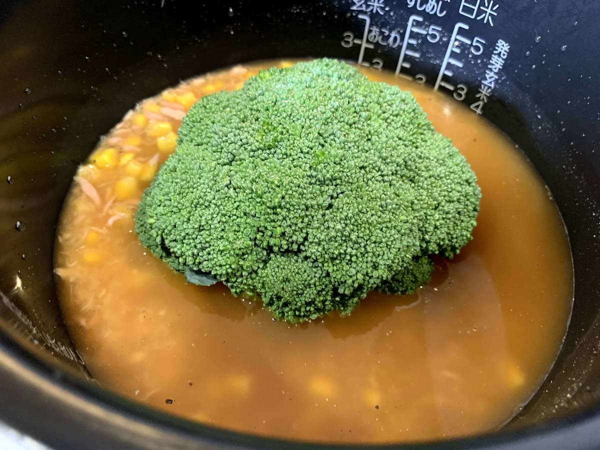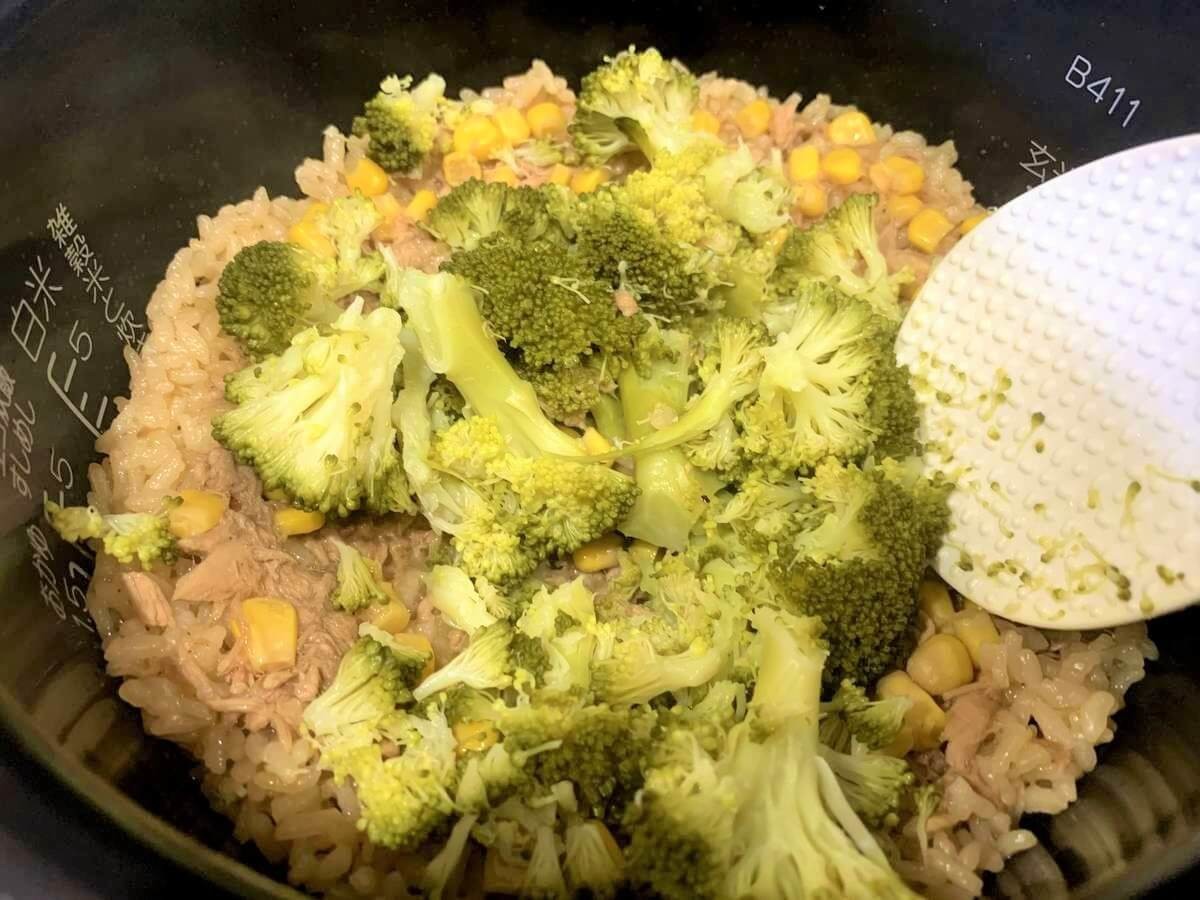 ブロッコリーご飯③ツナ缶とコーン缶を加える