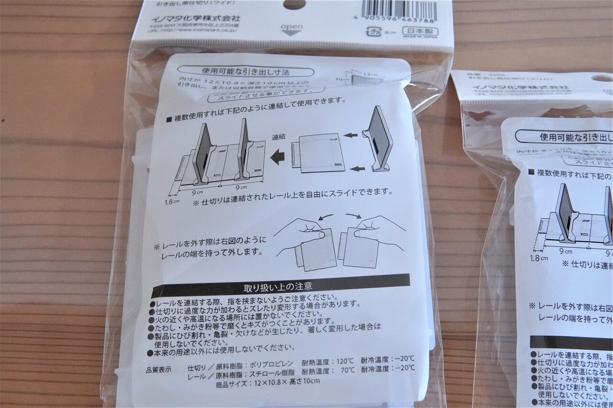 分類ごとに仕切ってみたら思った以上に使いやすく、より分かりやすくなったため、出し入れが格段にしやすくなり、使いやすくなりました。