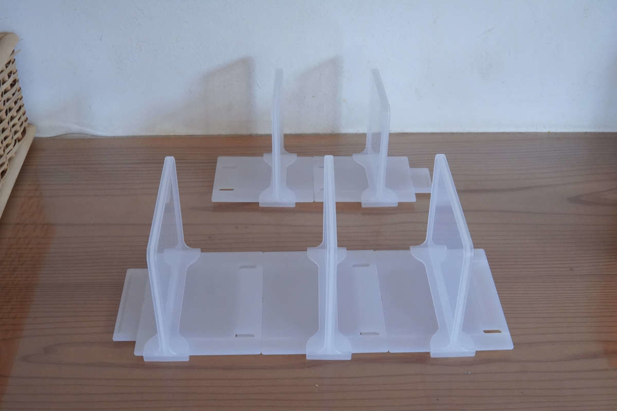 また、使ってもスライド式の仕切りのおかげで倒れ防止もできるので、すっきりきれいに並んだ状態をキープできるようになりました。