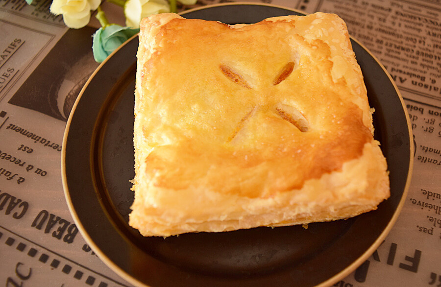 温め直しせずに食べましたが、ミスタードーナツのパイ生地は安定のサクサク感がありますね。冷めていてもおいしい、ミスドのパイ。パイ生地だけでもおいしくて、それだけで太鼓判を押したくなります。