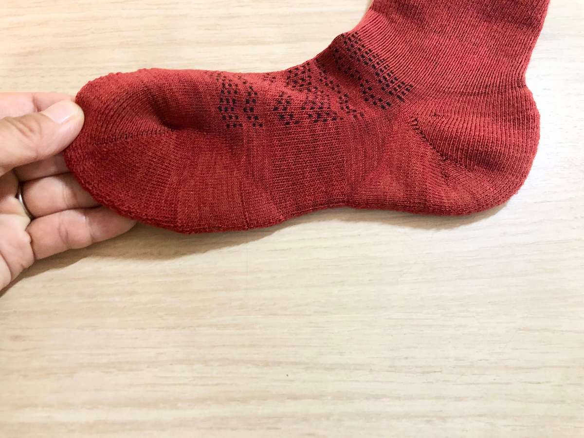 さらに、つま先とかかと部分にパイルが入っているため、履くとクッションが入っているかのようにふわふわします。また、靴下って、つま先やかかとからすり減っていくのでクッションが入っているなら破れるのも遅いのではないかと、こっそり期待しています。