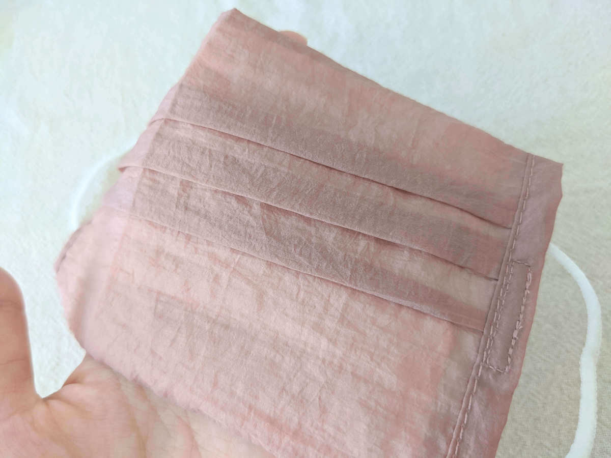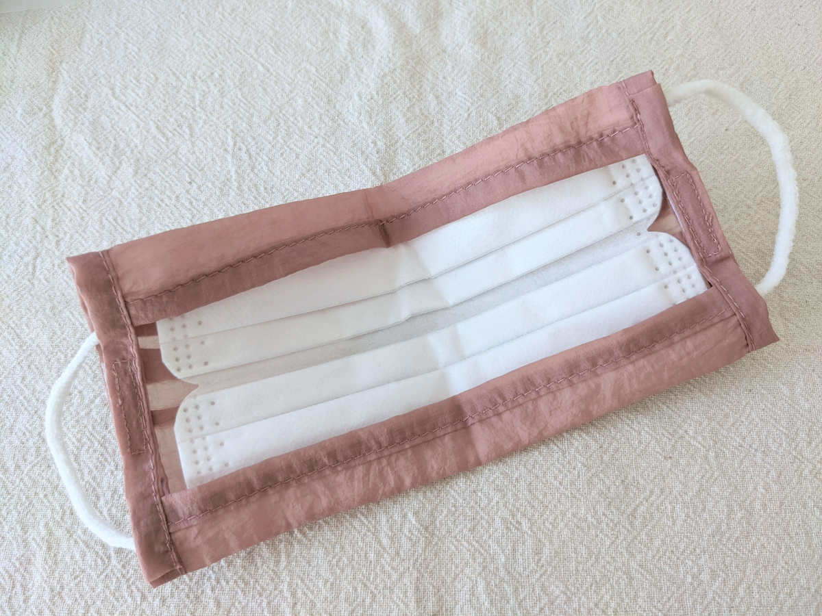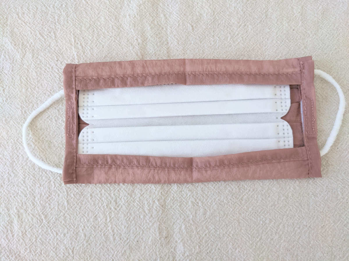 色合いも素材感も本当に気に入っているんですが、残念な点はマスクの存在感がありすぎるところ。 不織布マスクにカバーをつけることで、よりマスクが大きく見えることが原因だと思います。