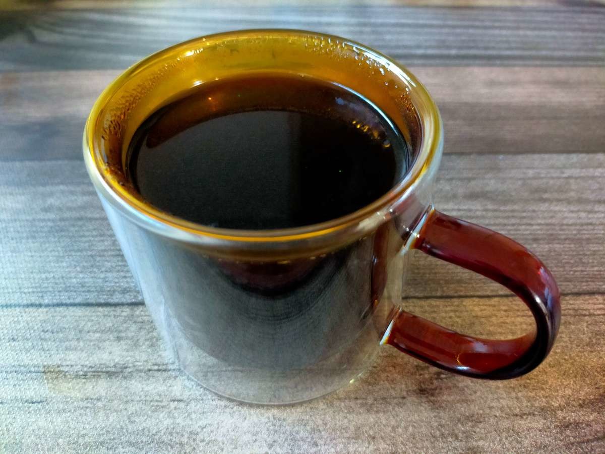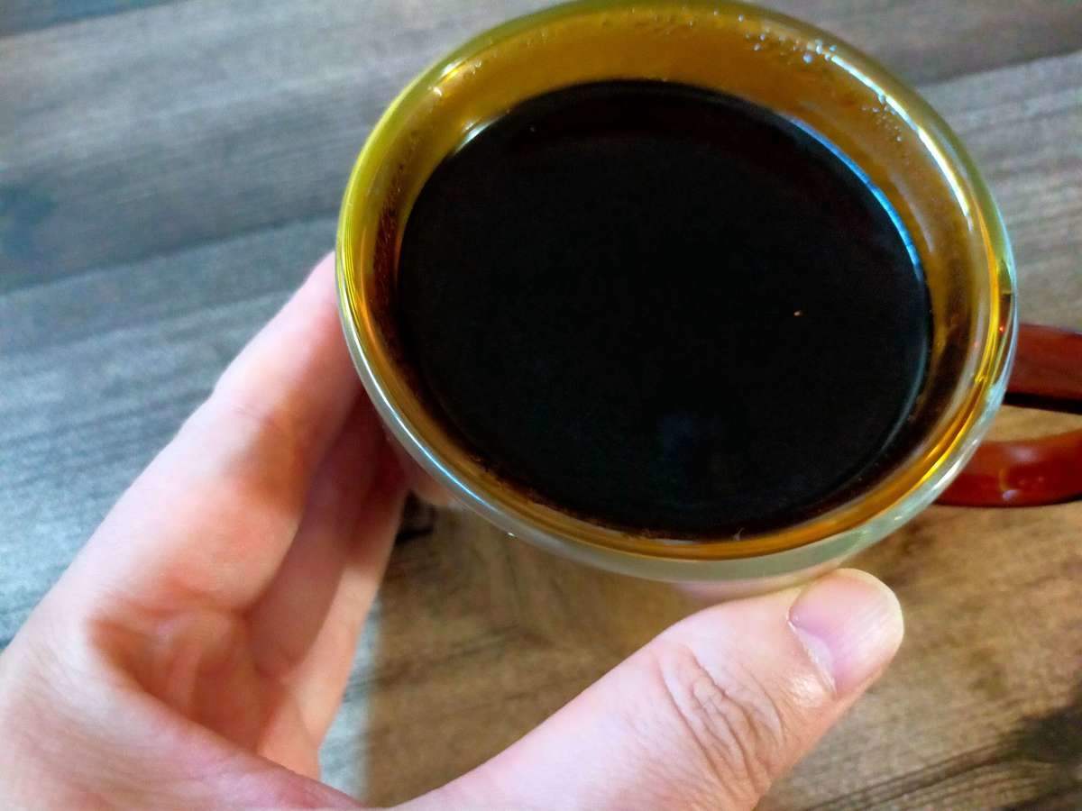 ダブルウォールグラスは2重構造。熱湯を入れて作ったコーヒーですが、カップの外側を直接素手で触っても、そこまで熱くないのがうれしいですね。