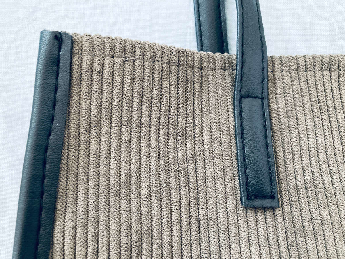 さらにしっかりとしていて毛羽立ちもありません。持ち手とパイピングは合皮素材でこれまた高見えしてます!