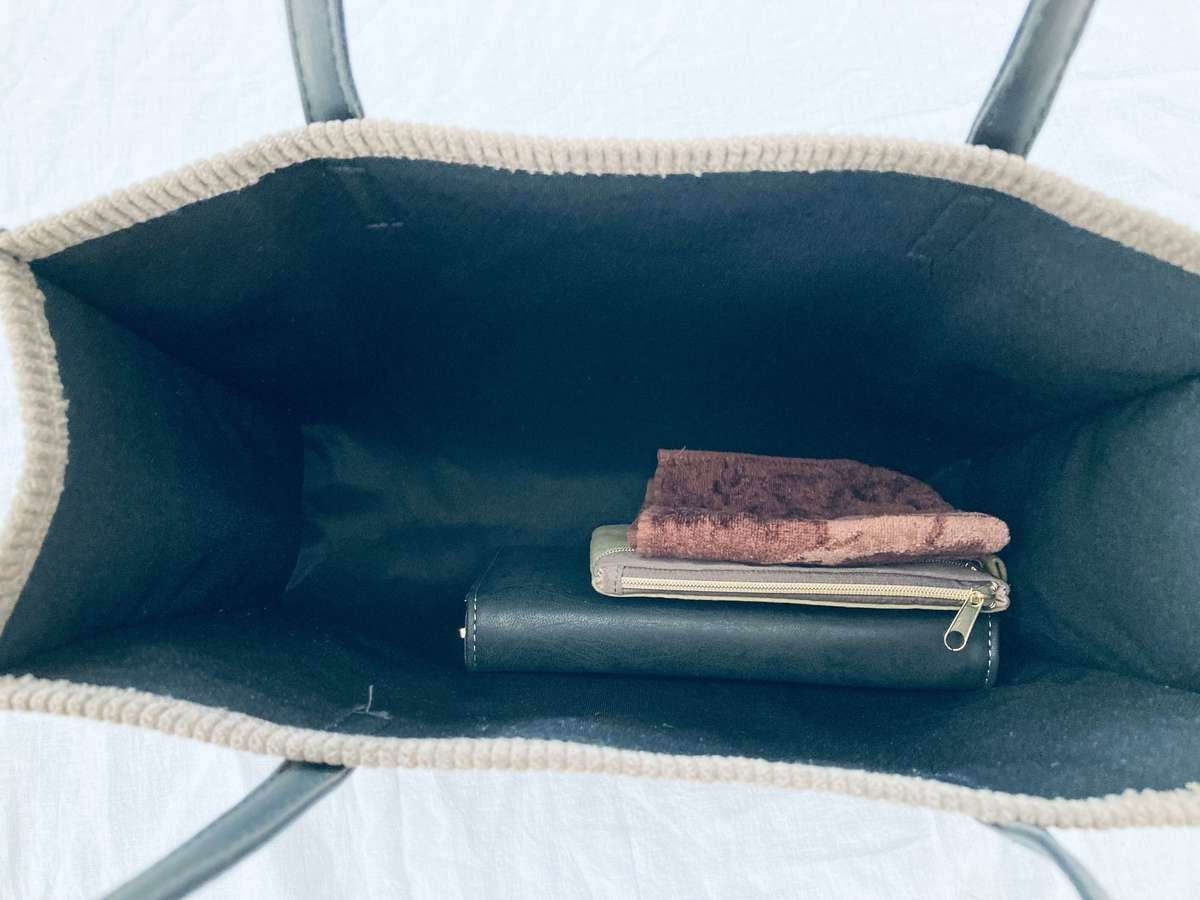 内側全体はポケットや仕切りはありません。目立つ縫い目がなくてすっきりとした印象。スリコの商品はプチプラ価格に見合わず作りが良いのが特徴です。今回のショルダーバッグも期待通りでした♪