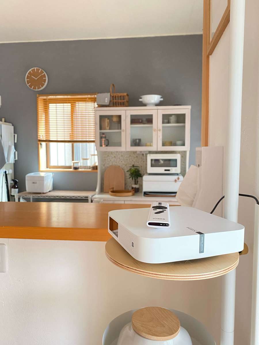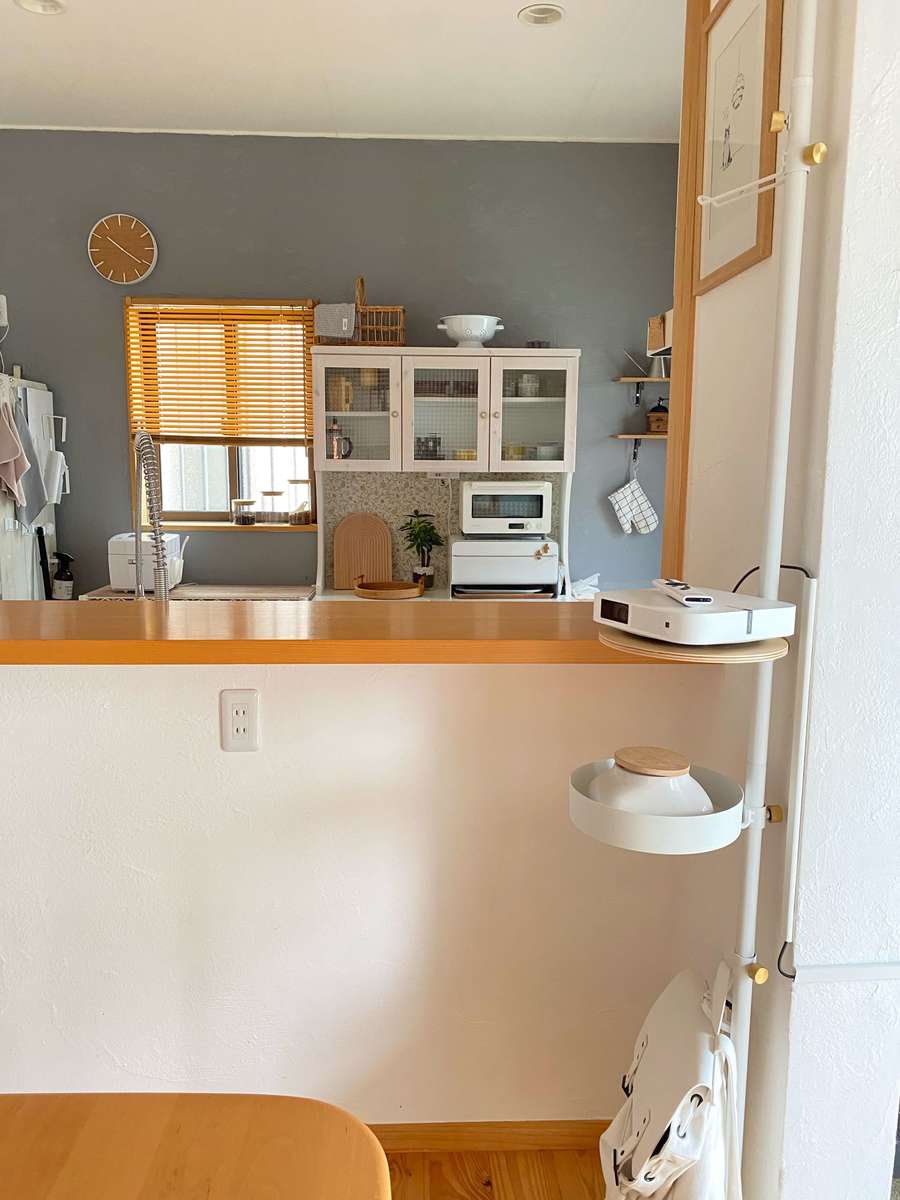 我が家では、カウンター脇にドローアラインを設置して、プロジェクター置き場として活用しています。
