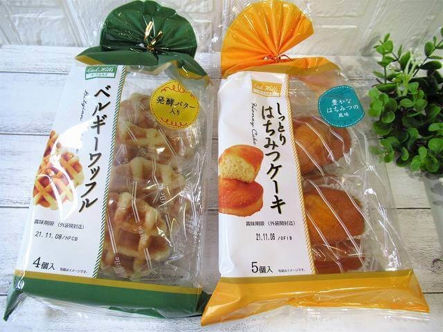 ちなみに今回購入したものの賞味期限は、10月上旬に購入時点で「しっとりはちみつケーキ」が11月6日まで、「ベルギーワッフル」が11月8日までと長期保存がメリットになっています。