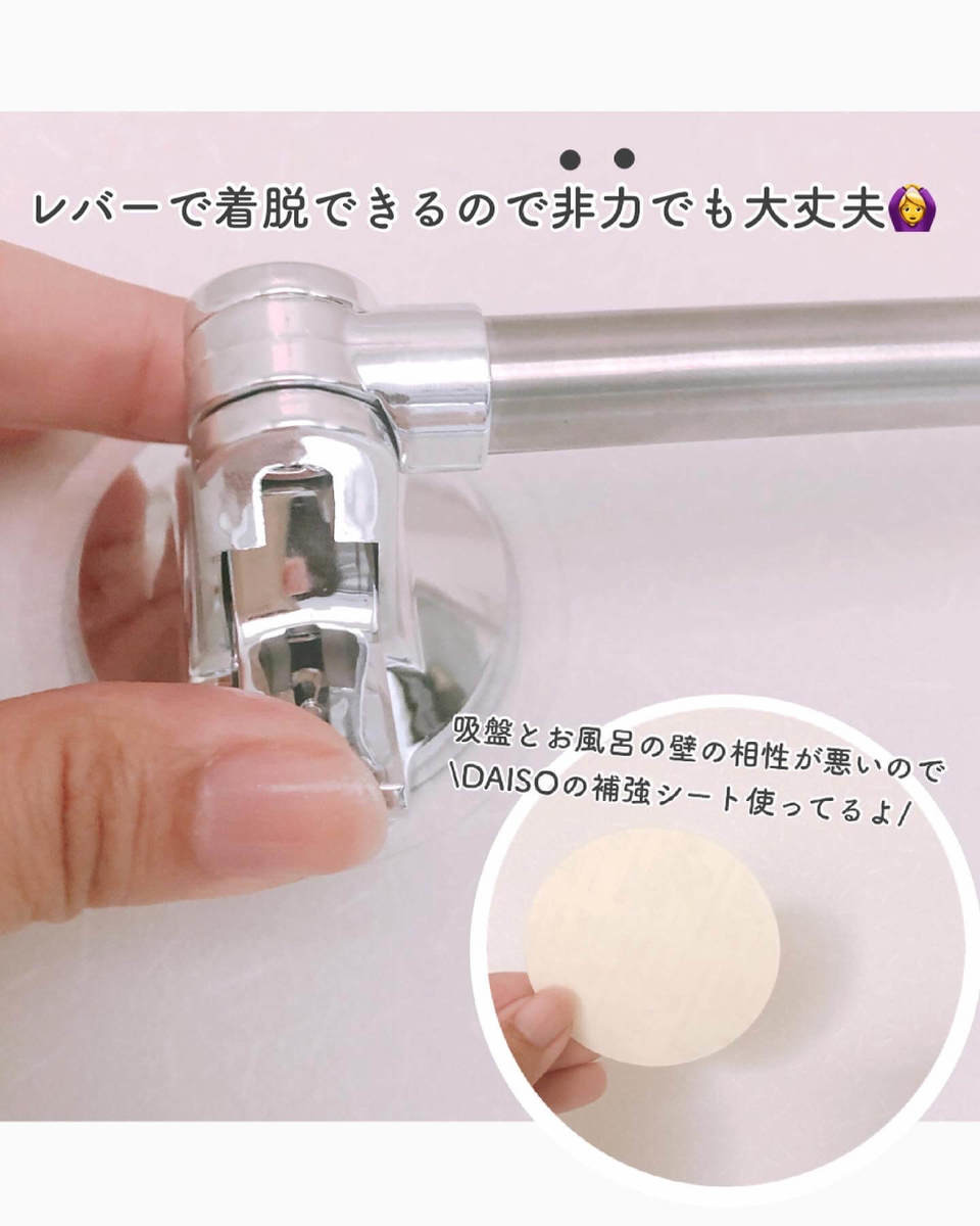 レバー式吸盤タイプで、力をかけなくてもしっかり壁にくっつくのが特徴です。