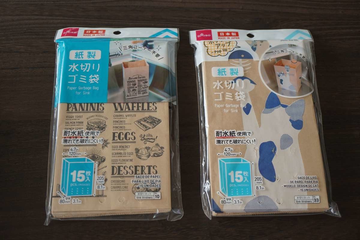 - 写真左:紙製水切りゴミ袋 110円(税込)