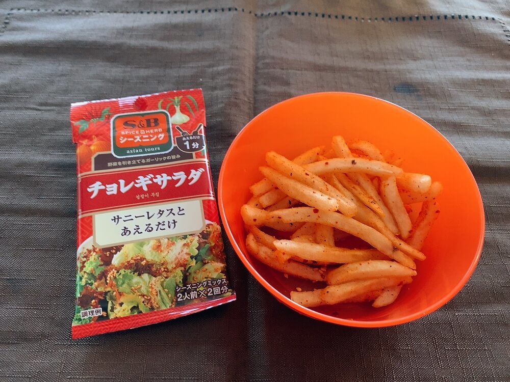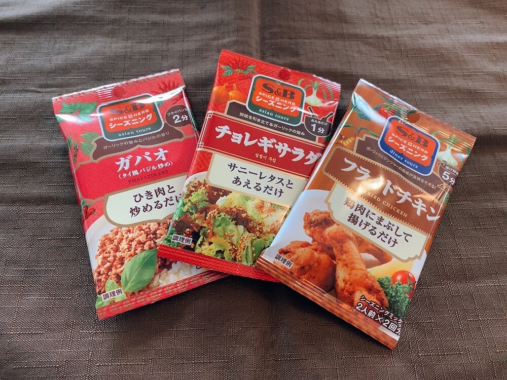 ここでは私が厳選したシーズニング「ガパオ」「チョレギサラダ」「フライドチキン」を振りかけて食べ比べます。