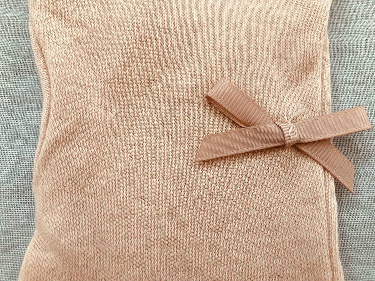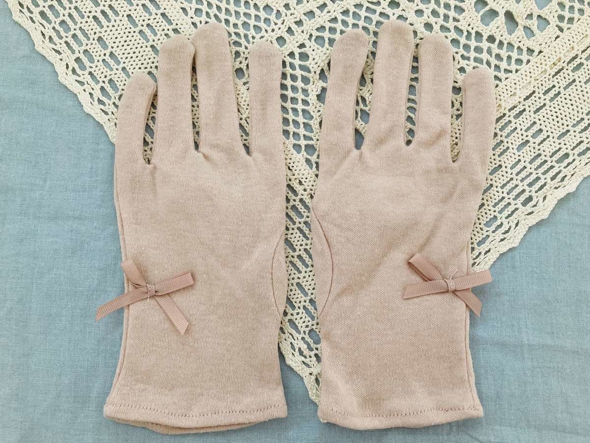 指先に塗ったハンドクリームをより効果的に浸透させるために使う「保湿用グローブ 330円(税込)」。スリコさんお得意のくすみカラーと、ワンポイントのリボンが女子力高いです!