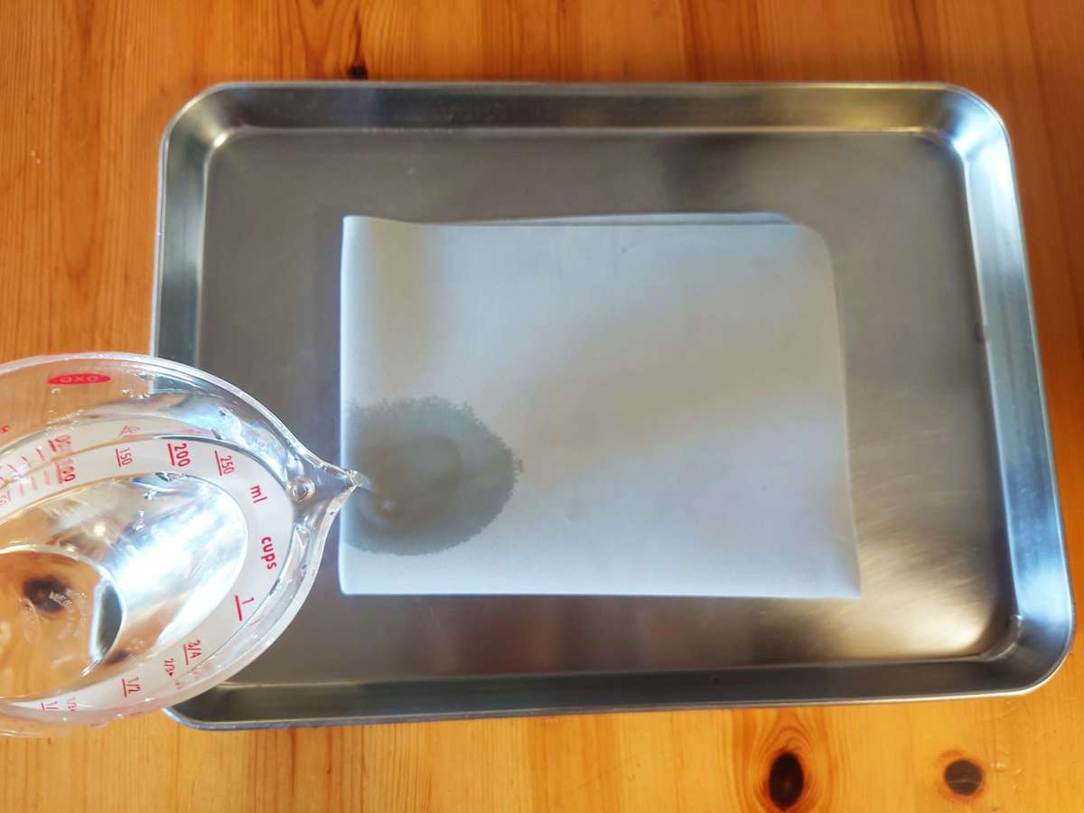 たっぷり水を吸わせたあとにギュッと絞って水を出します。