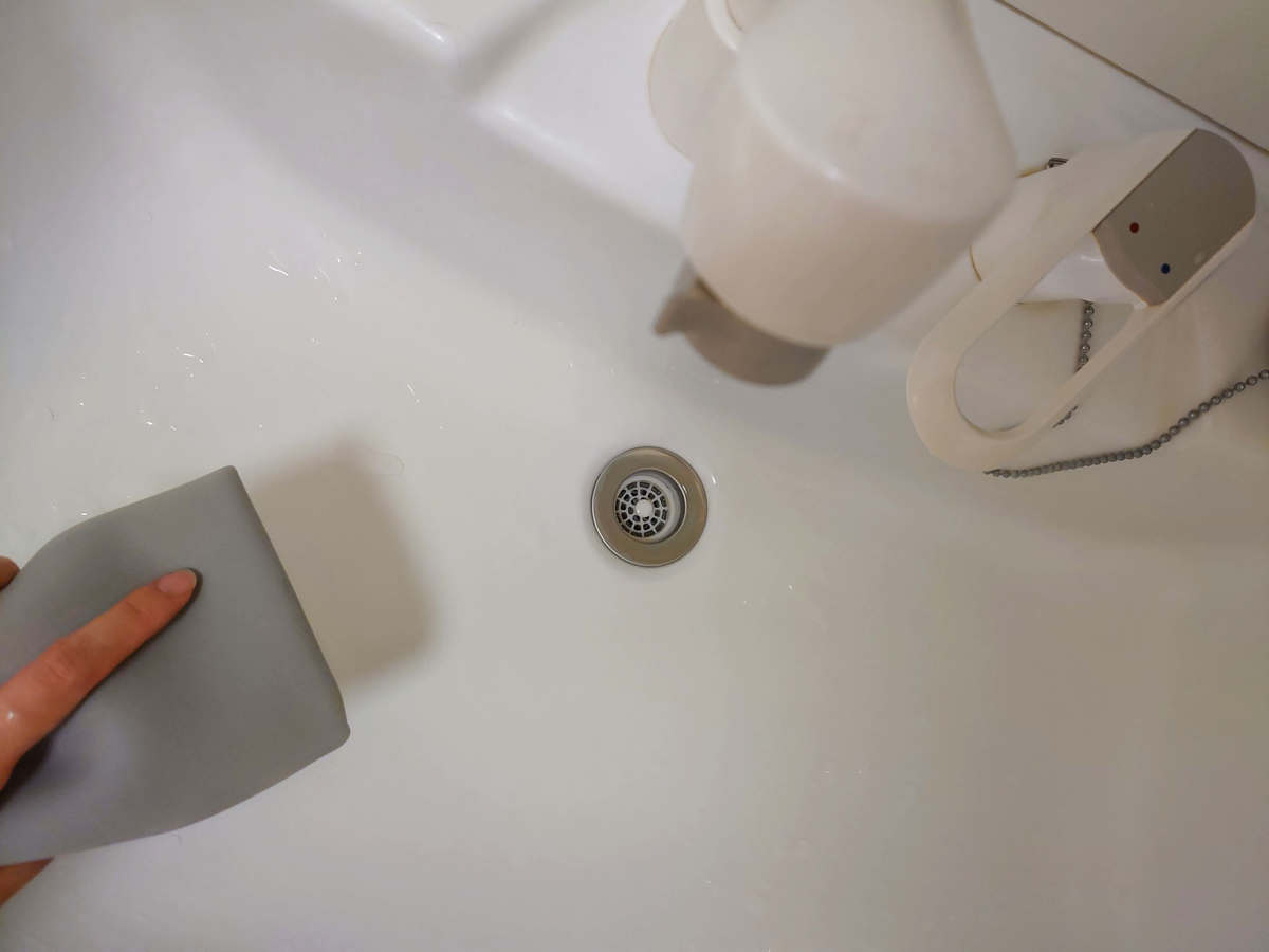 洗面台まわりの水滴も、ひと拭きでスッキリ!