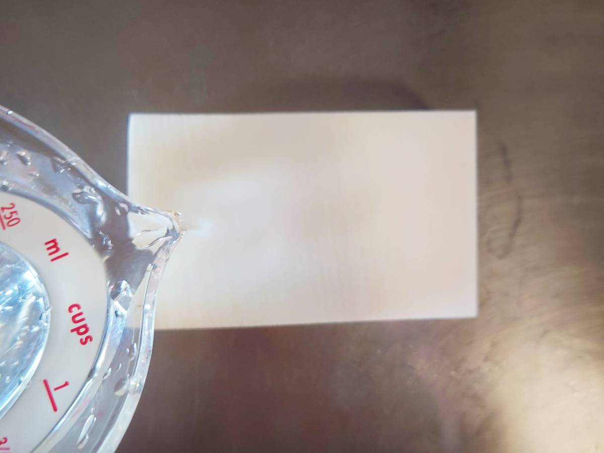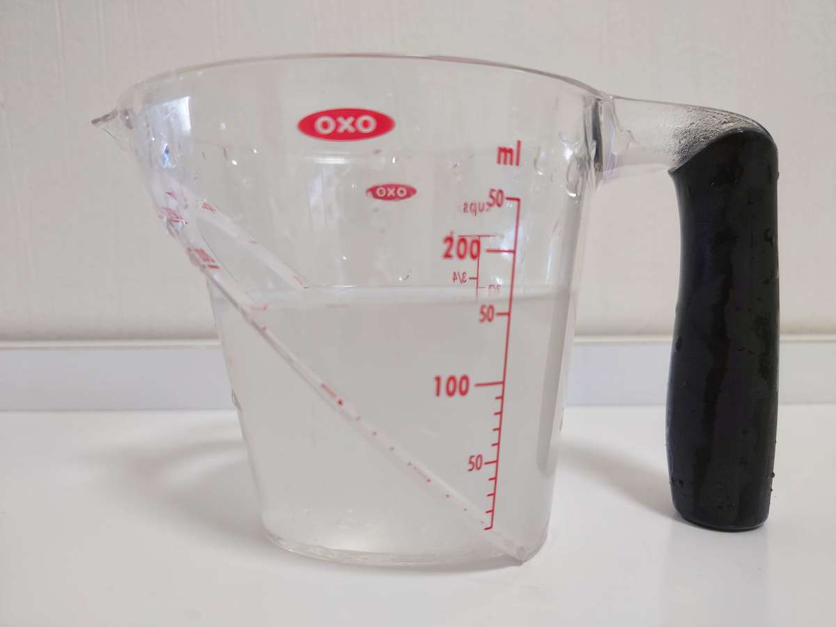 スポンジの結果は、約90mlでした。小さいスポンジでこれだけの量を吸えるとは、おそるべしPVA!