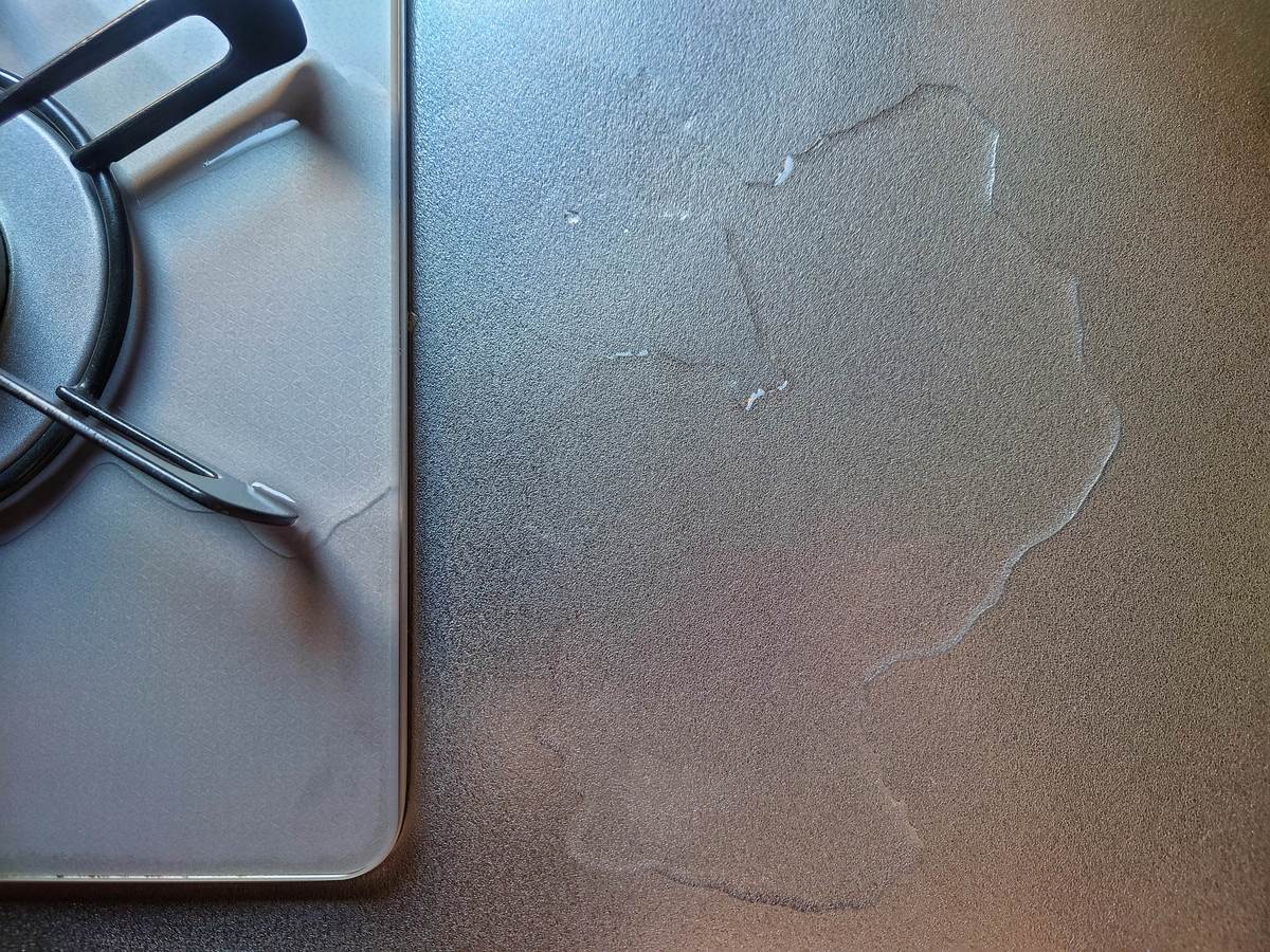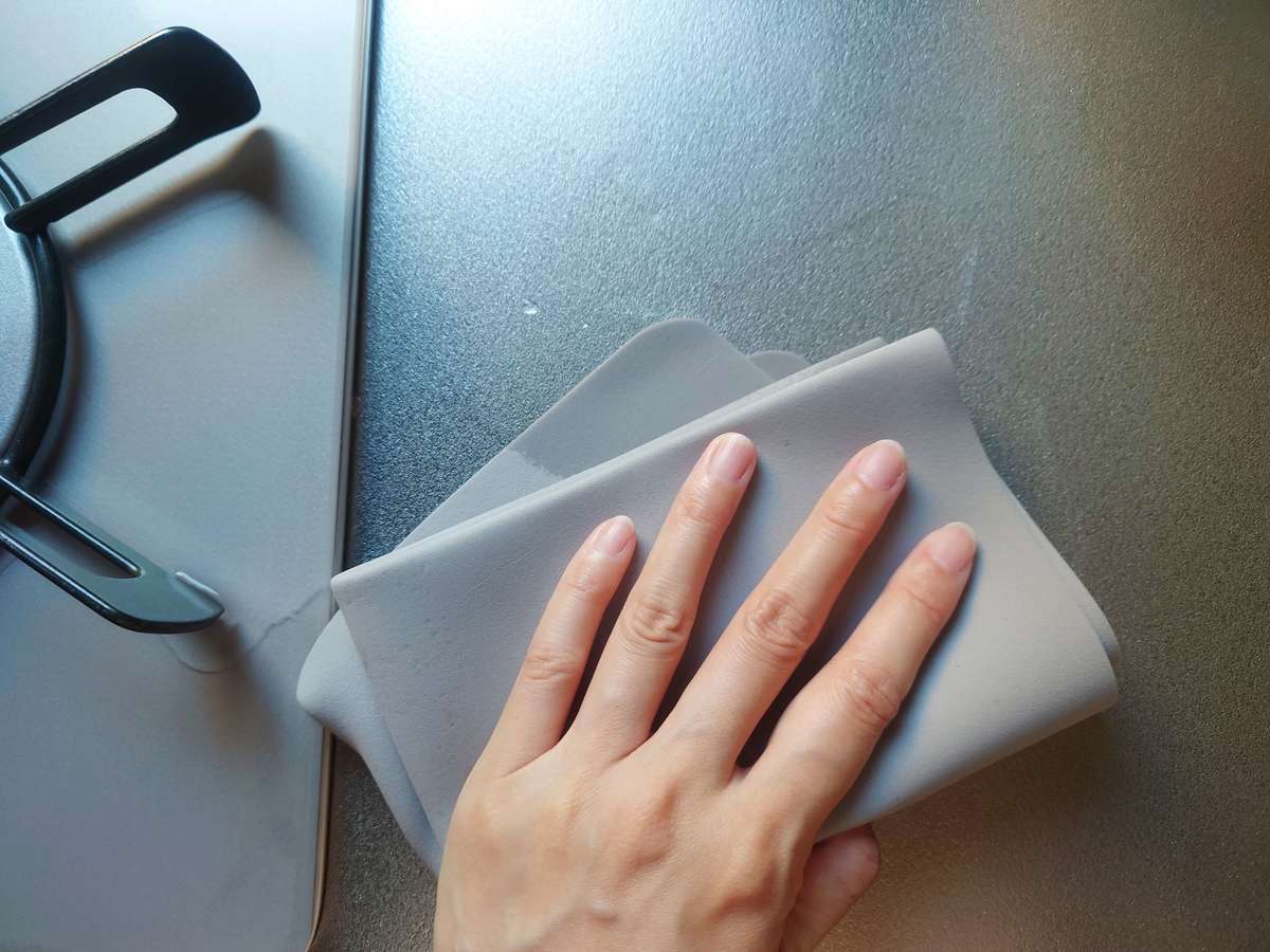 クロスを滑らせたところの水分がどんどん吸い取られていきます。飲み物をこぼした時にもササッと拭けて吸収してくれます。