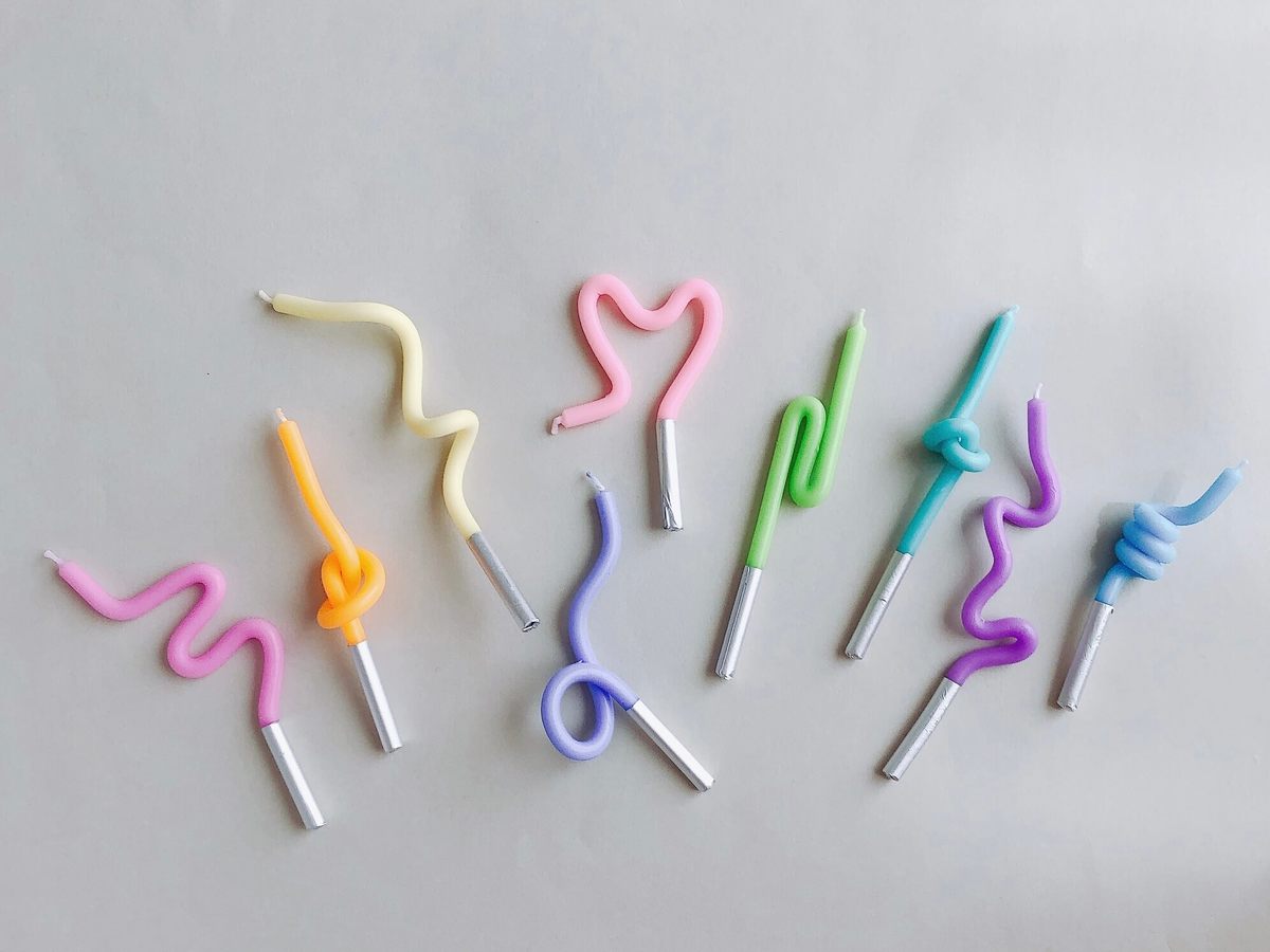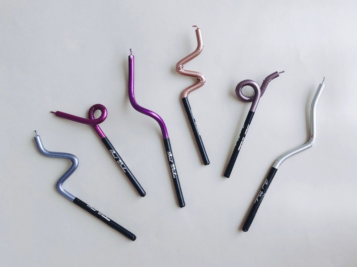 大人っぽいカラーで素敵ですが、ロウソクの外側がアルミなので曲げるとアルミ部分にシワができたり、アルミが剥がれてくるので、軽くウネウネにするくらいが限界でした。