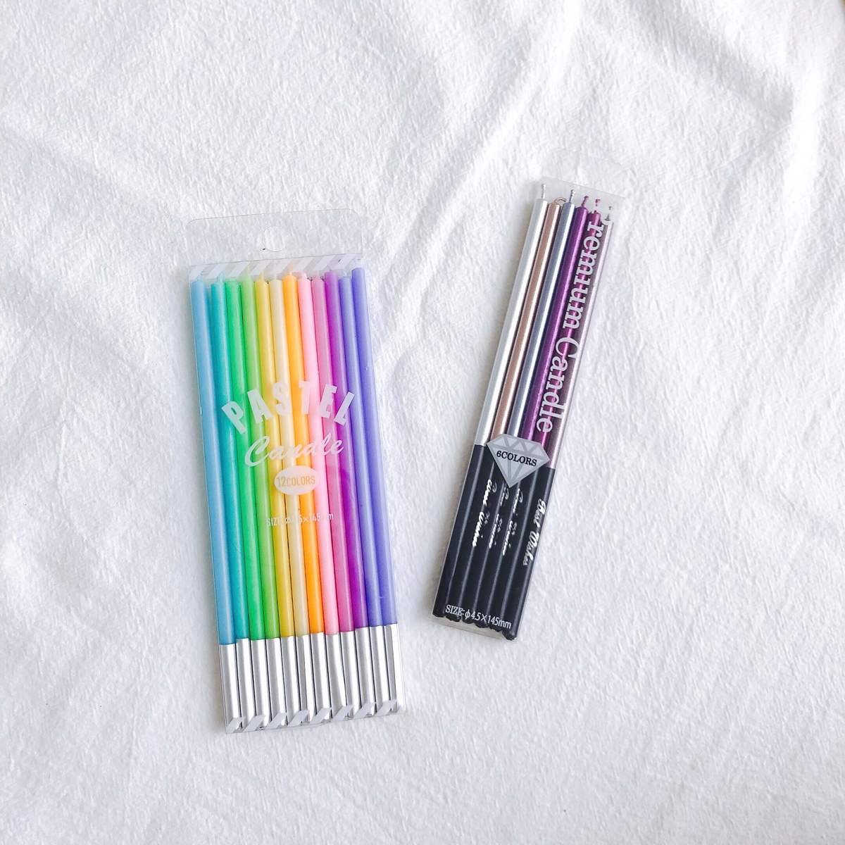 セリアでかわいいパステルカラーのロウソクと、グラマラスカラーのロウソク2種類を購入しました♪