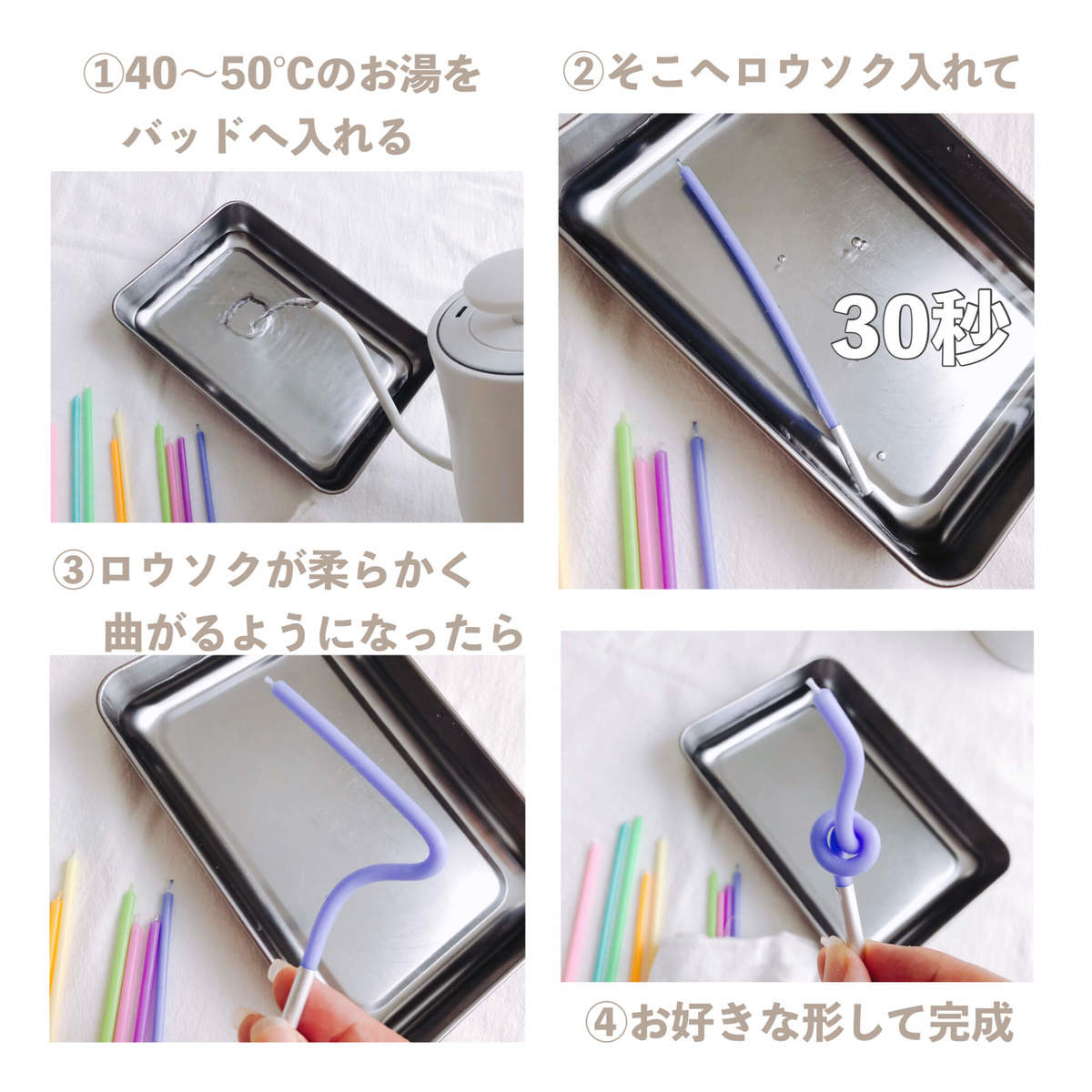 ロウソクの他に、お湯・バッド(深めの皿)・布巾・割り箸を用意すれば準備完了です!