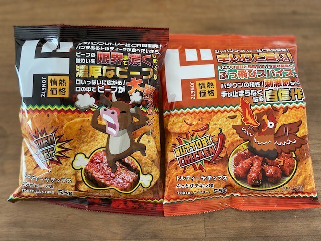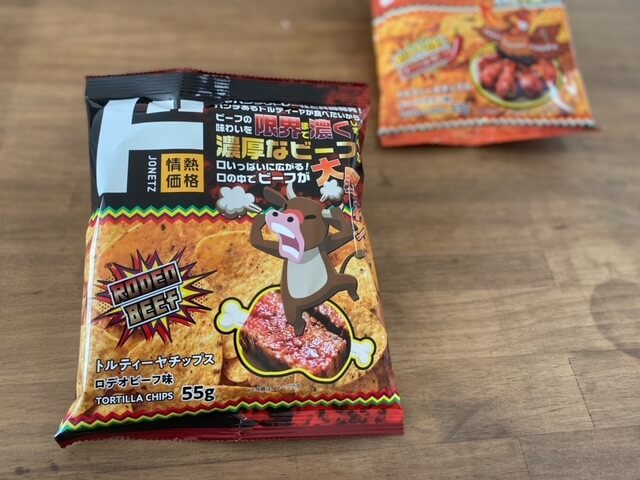 そんなジャパンフリトレーとの共同開発なので、期待大!「ロデオビーフ味」と「ぶっとびチキン味」を食レポしていきます♪