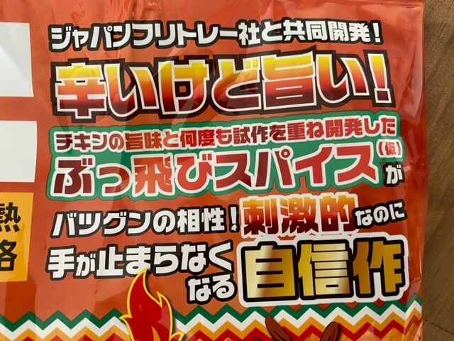 続いては、ニワトリが口から炎を吹いている、見るからに辛そうな「ぶっとびチキン味」です。