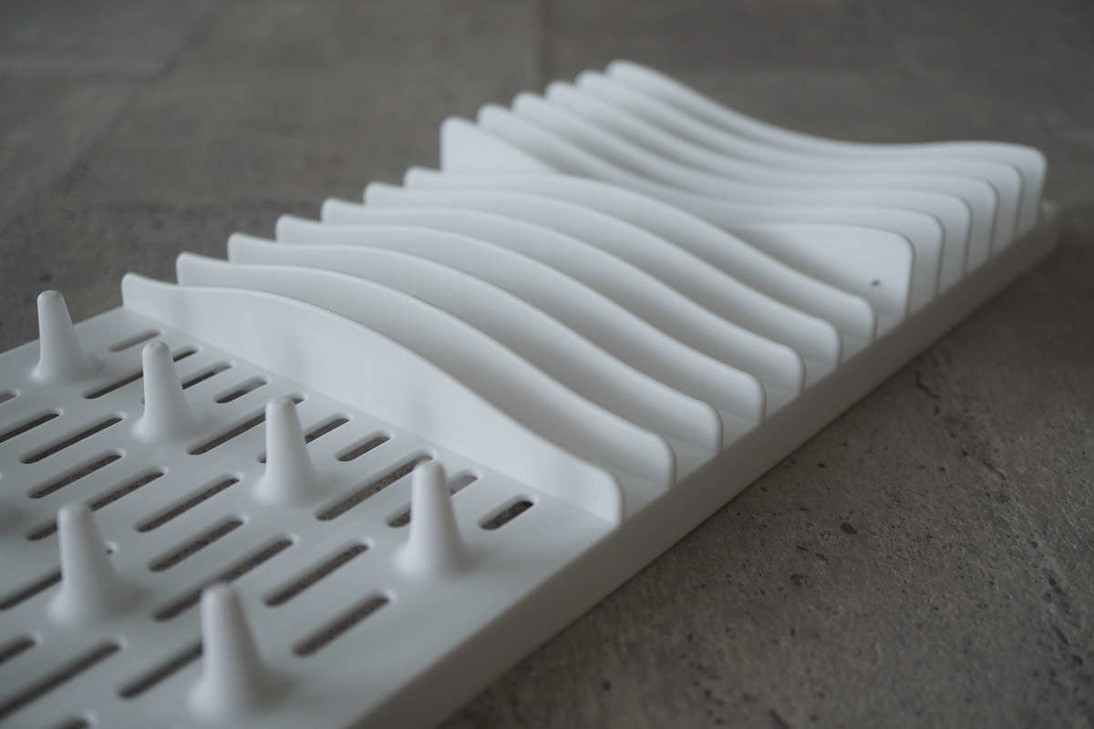 このようにマットの上にスタンドをセットすると、小皿や中皿などは立てて水切りすることができます。
