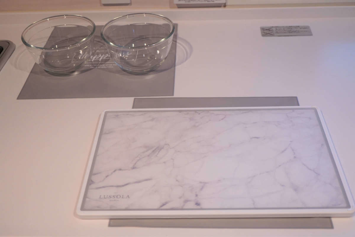シリコーンキッチンマットの上にボウルやバットを置くと、作業台の汚れ防止にもなります。