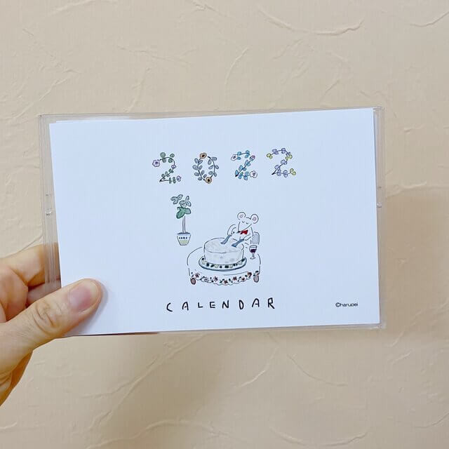 サイズは、ポストカードサイズ(10cm×14.8cm)です。手書きのようなフォントが、ゆるくておしゃれ見えします。こっくりとしたくすみカラーのカレンダーなので、大人女子にもおすすめの作品です!