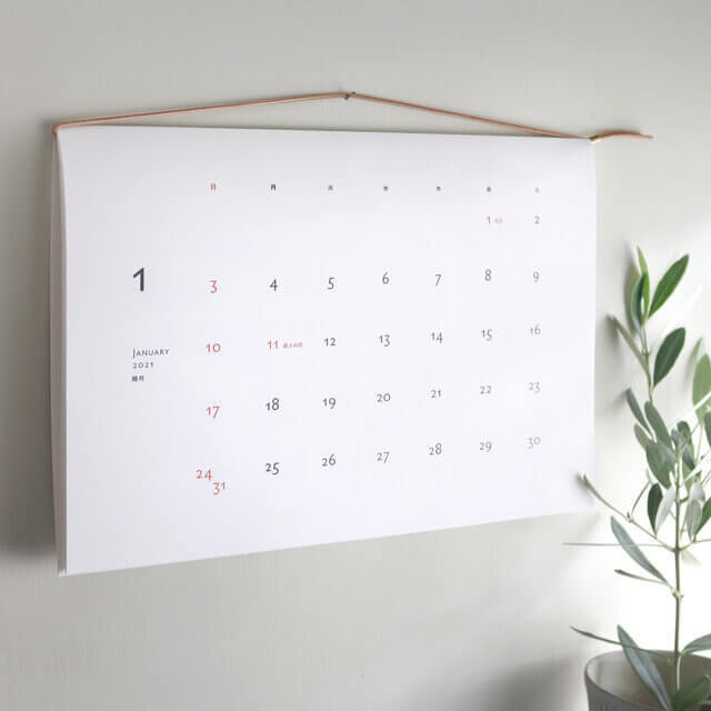 ちょっぴり大人めなカレンダーが欲しい!という方にぴったりな作品「牛革掛け紐・壁掛けカレンダー」です。その名の通り、国産の牛革の掛け紐とゴールドの留め金具が、上品でリッチな印象です。