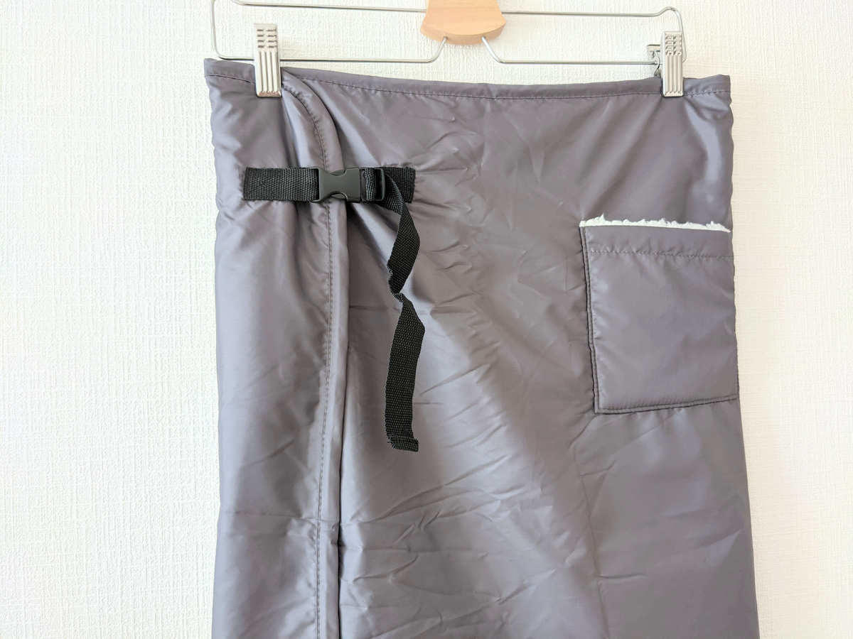 ちょっと肌寒いなぁと感じたら、ブランケットを腰に巻けばスカートに早変わりします。 アジャスターでサイズを調節できるため、歩いているうちに落ちてしまうといったことはありません。